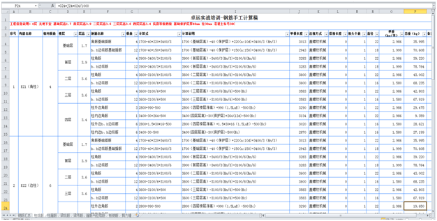 Ø 钢筋作业:钢筋计算明细
