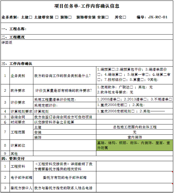 Ø 完成项目确认单: