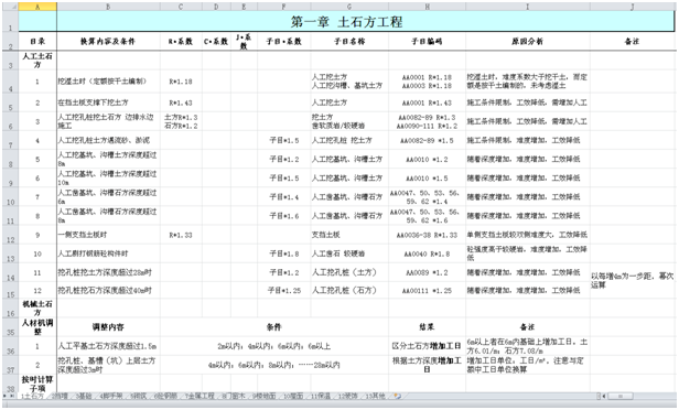 Ø 定额系数分析及整理对应子目