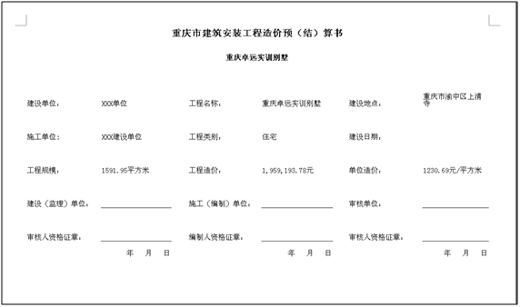 Ø 别墅实战预算完成: