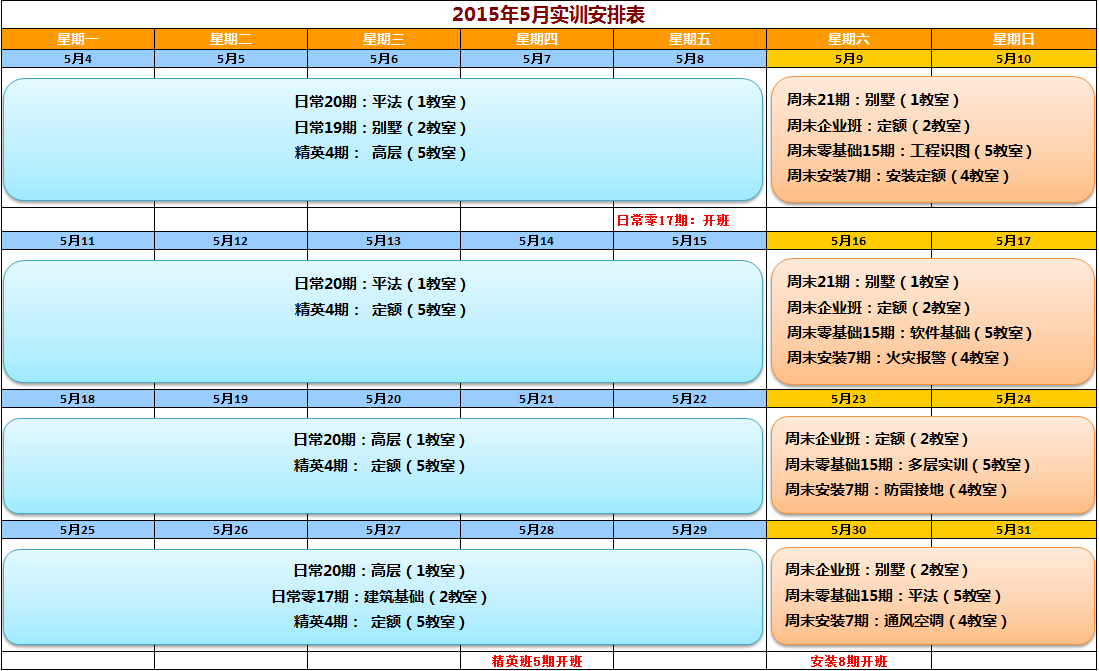 2015年5月实训安排