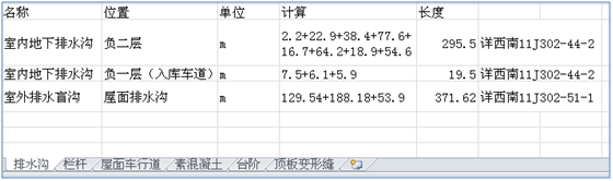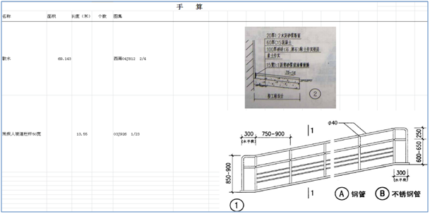 2)其他手算项:散水、台阶、坡道、坡道栏杆、变形缝、预埋件、成品烟道等。