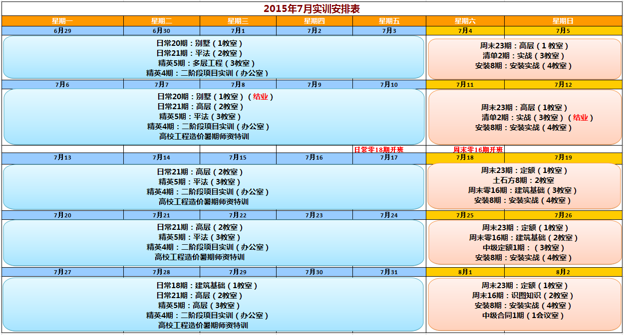 2015年7月实训安排