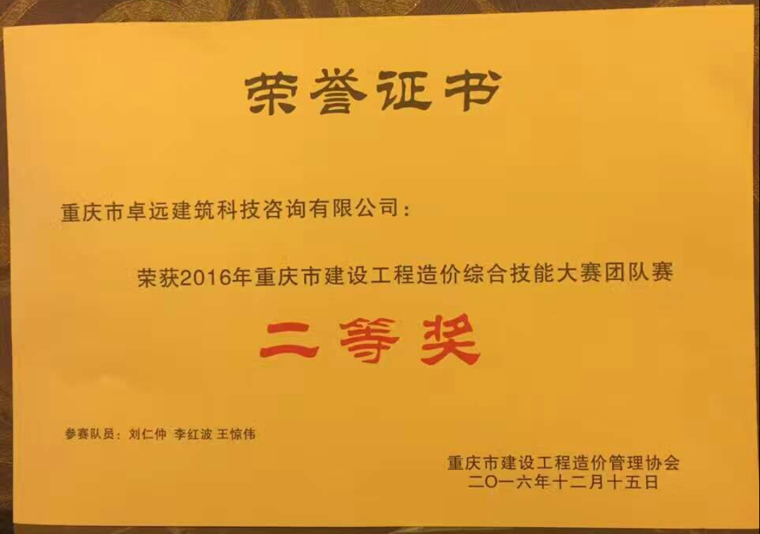 在这次工程造价综合技能大赛中,卓远公司收获颇丰,不仅仅有卓远三剑客在大家面前的崭露头角,而且更多地获得造价行业乃至建筑行业对卓远技术的认可与支持。相信卓远公司会在专业技术这一道路上越走越远、越走越好!最后,再次热烈祝贺卓远公司荣获2016重庆市建设工程造价综合技能大赛团体赛决赛“二等奖”!